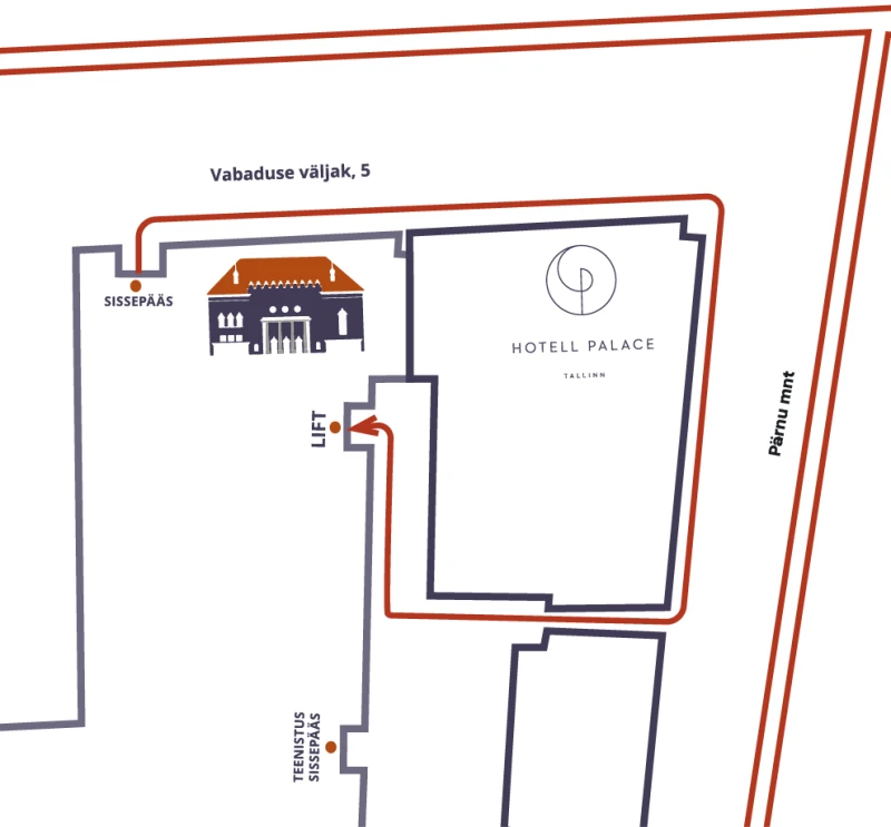 Piiratud liikumisvõimega külastajatele on eraldi sissepääs Pärnu maantee 18 kangialuse kaudu. Hoovis asuvast teatrihoone ametisissepääsust paremale jääb spetsiaalne invalift, mis aitab ratastoolis külastajal jõuda otse teatri fuajeesse, peeglisaali, kunstigaleriisse ja suurde saali. Liikumisteed invalifti juurde kirjeldab käesoleva teksti all olev skeem.