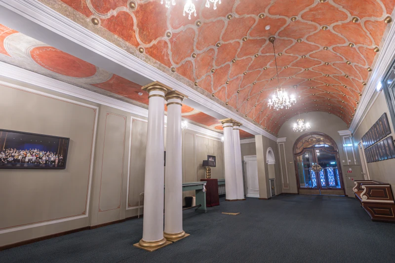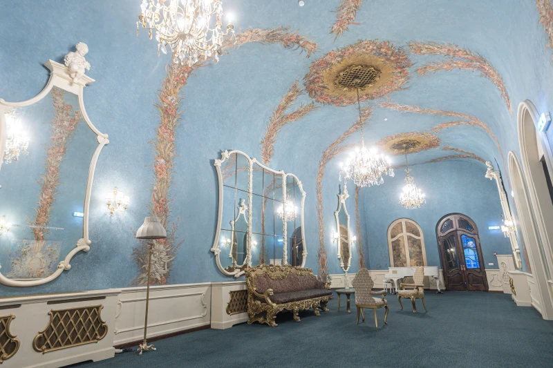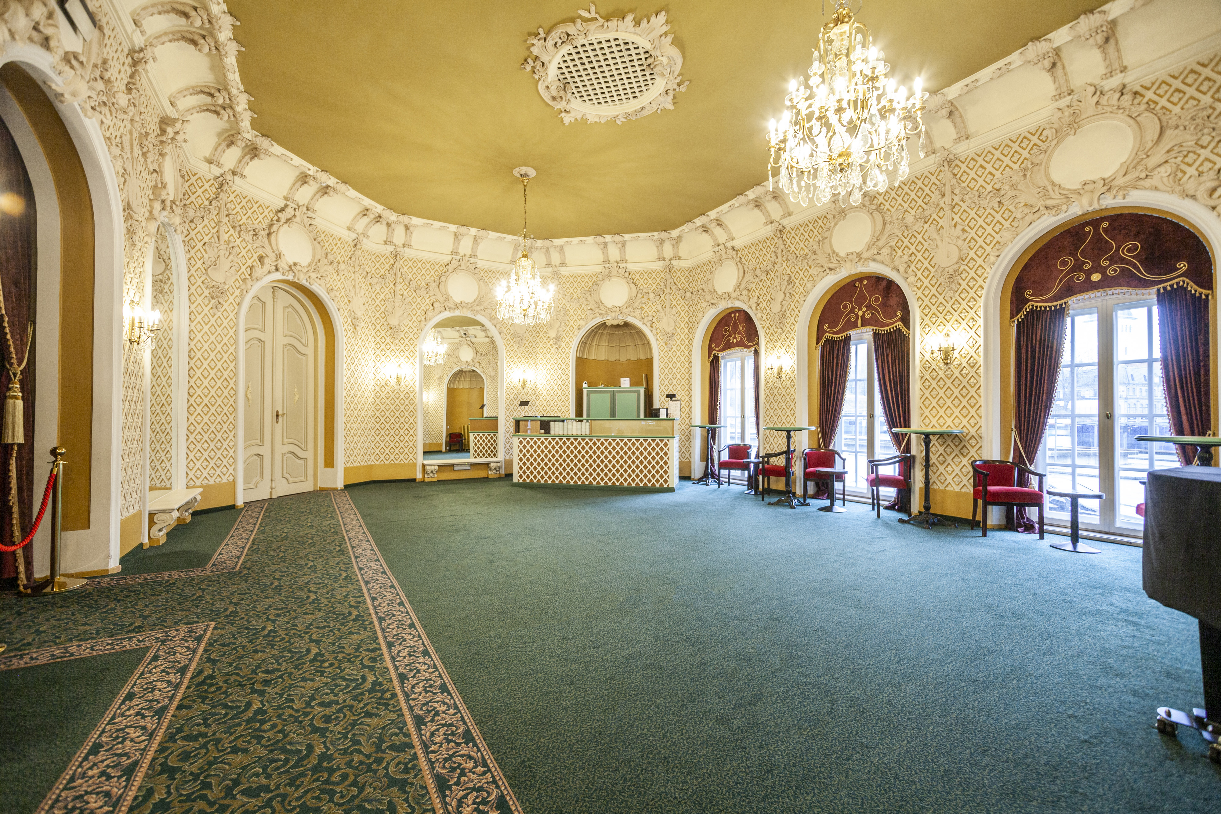 Kaminasaal on luksuslik fuajee, mis on kaunistatud kuldkrohviga, lühtrite ja barokkpeeglitega - ideaalne koht pidustusteks ja pulmatseremooniateks. Asub 2.korrusel, mahutab 60 istekohta, 85 seisukohta. Võimalus kasutada lisavalgustust, helitehnikat, samuti elavat muusikat.