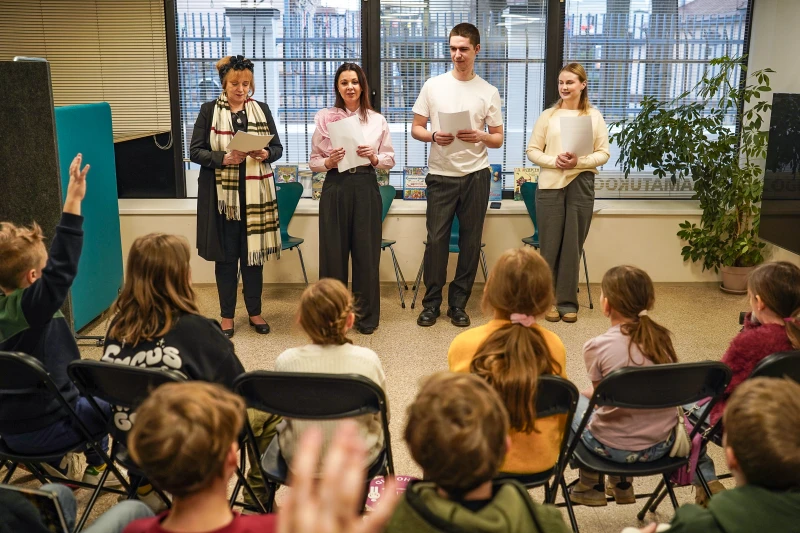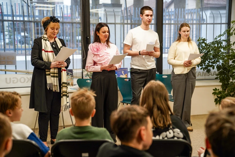 Младшие школьники из разных учебных заведений Таллинна в компании известных персон Эстонии и актёровРусского театра вместе читали сказки Г. Х. Андерсена, в честь дня рождения которого в 1967 году и был учрежден праздник детской книги.