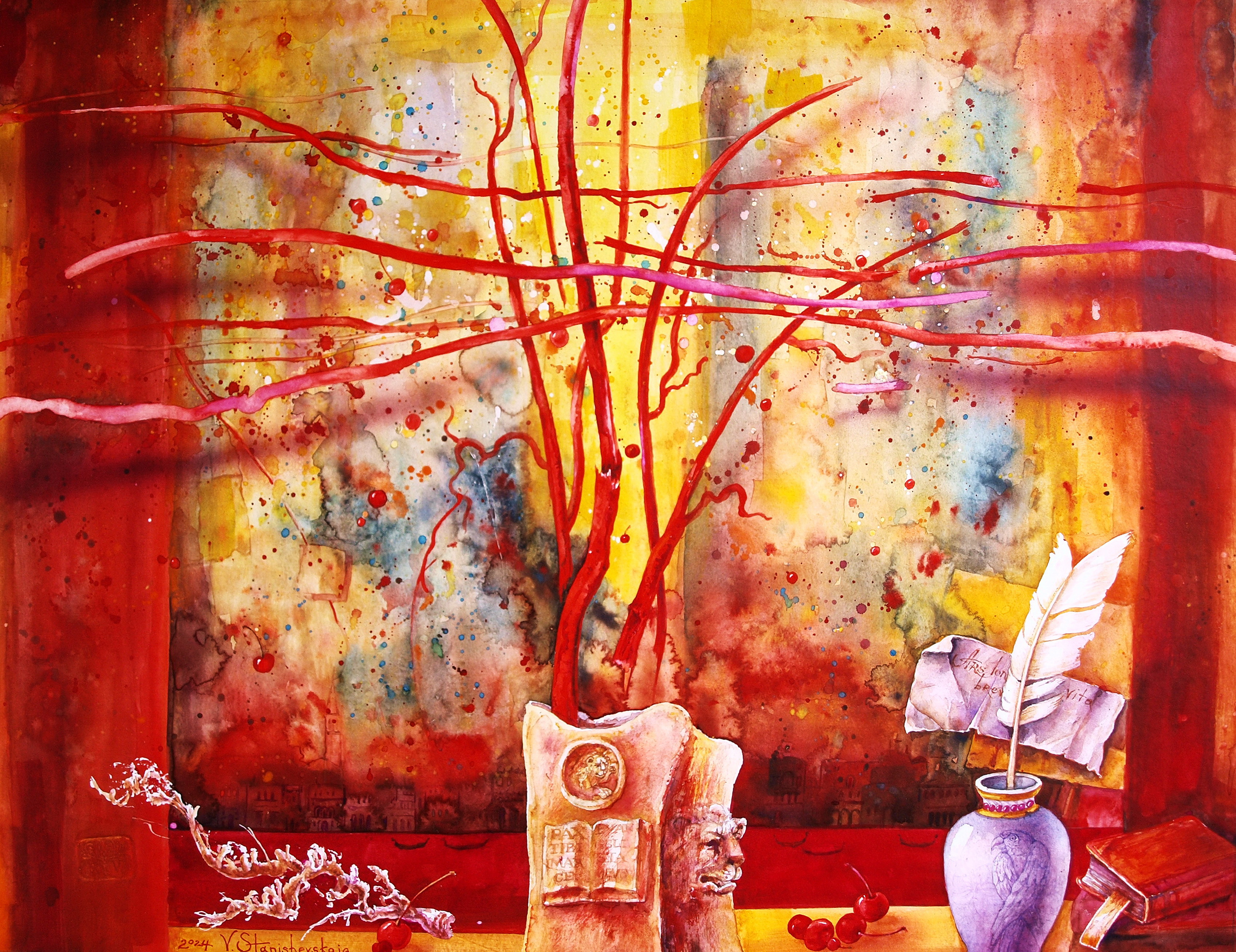 Создавая натюрморты, я создаю свой особый мир и придумываю некую историю, где каждый изображённый предмет несёт смысловое и символическое значение. Иногда придуманные мною истории не умещается в одной работе. И вот тогда появляется целый цикл работ на одну тему». По словам Веры Станишевской каждое изображение имеет свою, иногда совершенно неожиданную историю.