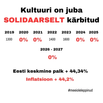 Во время пикета в понедельник утром у Дома Стенбока работники театров развернули плакат „тенденция роста зарплат эстонских артистов“. „Мы получаем деньги от государства. В каком-то смысле, мы госчиновники. Только у чиновников из Дома Стенбока зарплаты каждый год индексируются, а у нас нет. Мы чиновники не того уровня“, - добавил Кучмезов.