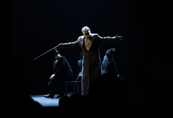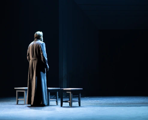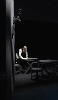 «Артист государственных театров» Брюскон — главный герой самой популярной пьесы австрийского писателя и драматурга Томаса Бернхарда «Лицедей». Вместе с маленькой труппой, состоящей исключительно из членов его семьи, Брюскон ездит по глухим провинциальным городкам, показывая собственную, как он полагает, гениальную пьесу «Колесо истории». Маленький городок Уцбах становится местом неизбежной катастрофы.